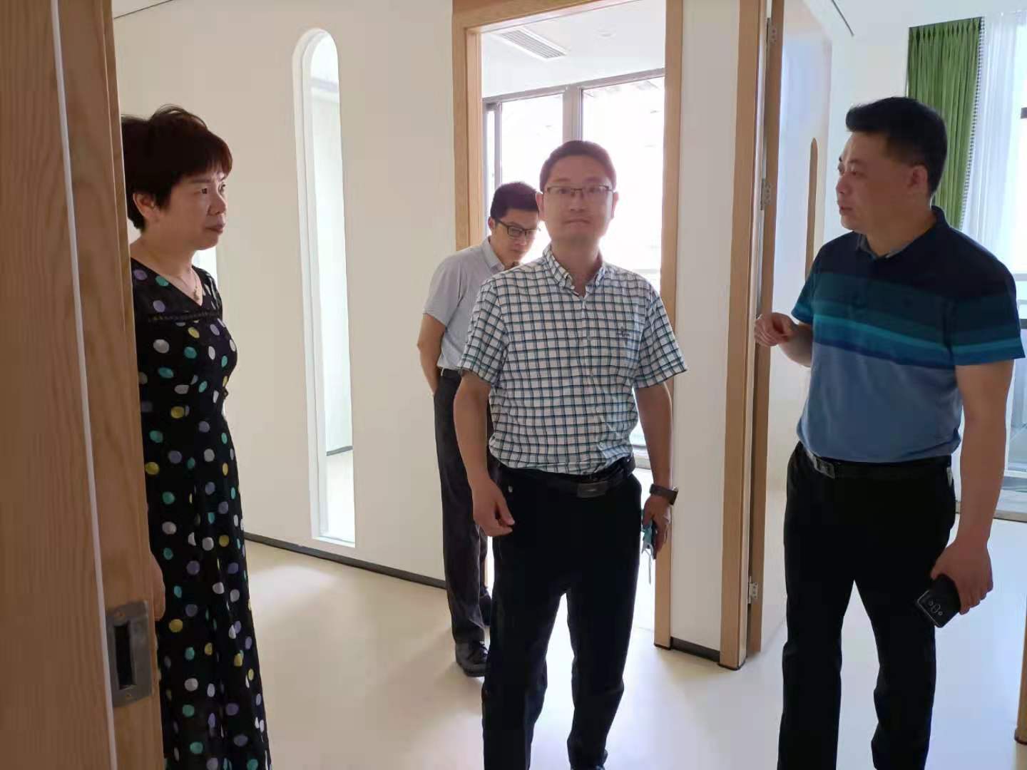 鐘伍一行參觀了母嬰康養中心的兒童洗浴區、產康功能區、瑜伽室等。座談中,王春詳細介紹了母嬰康養中心籌建情況運營思路。