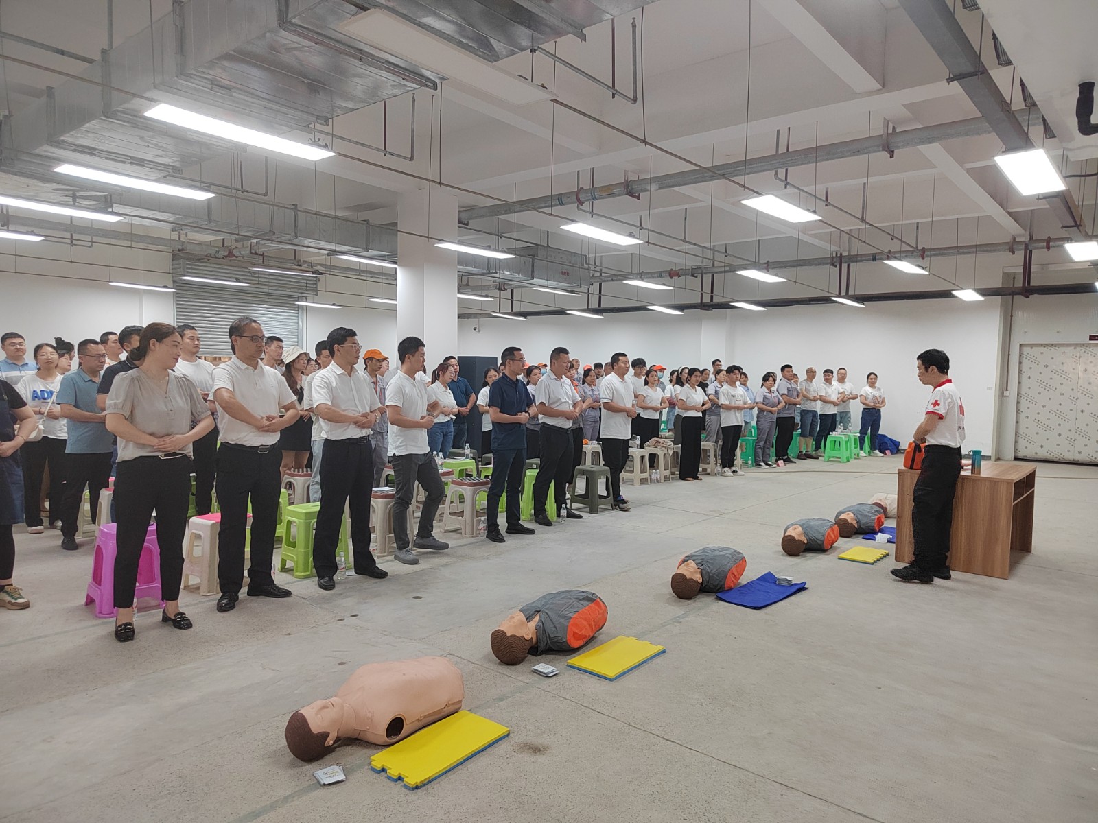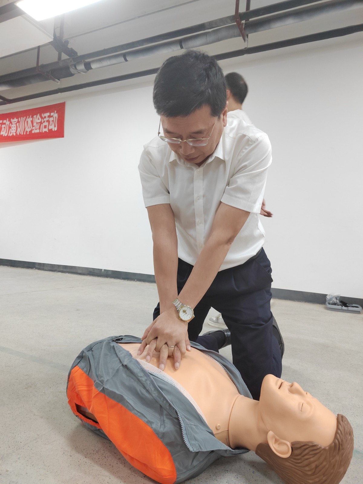 活動中,消科委教官通過三維立體逃生帳篷模擬真實火場黑暗、濃煙、高溫環(huán)境掌握在火場中基本的逃生方法和避難技巧在火災發(fā)生時,使用正確方式方法進行火場疏散逃生,運用真實火線穿越提升火場逃生自救能力理論與實踐相結(jié)合,更好、更快、更有效的參與到初期火災的應急處置中通過滅火實操提升應急處置技能市紅十字會副會長胡坤分別講授針對驟停心臟導致呼吸停止和清除上呼吸道異物采取的心肺復蘇法(CPR)和海姆立克急救法,為急救病人爭取黃金救治時間。