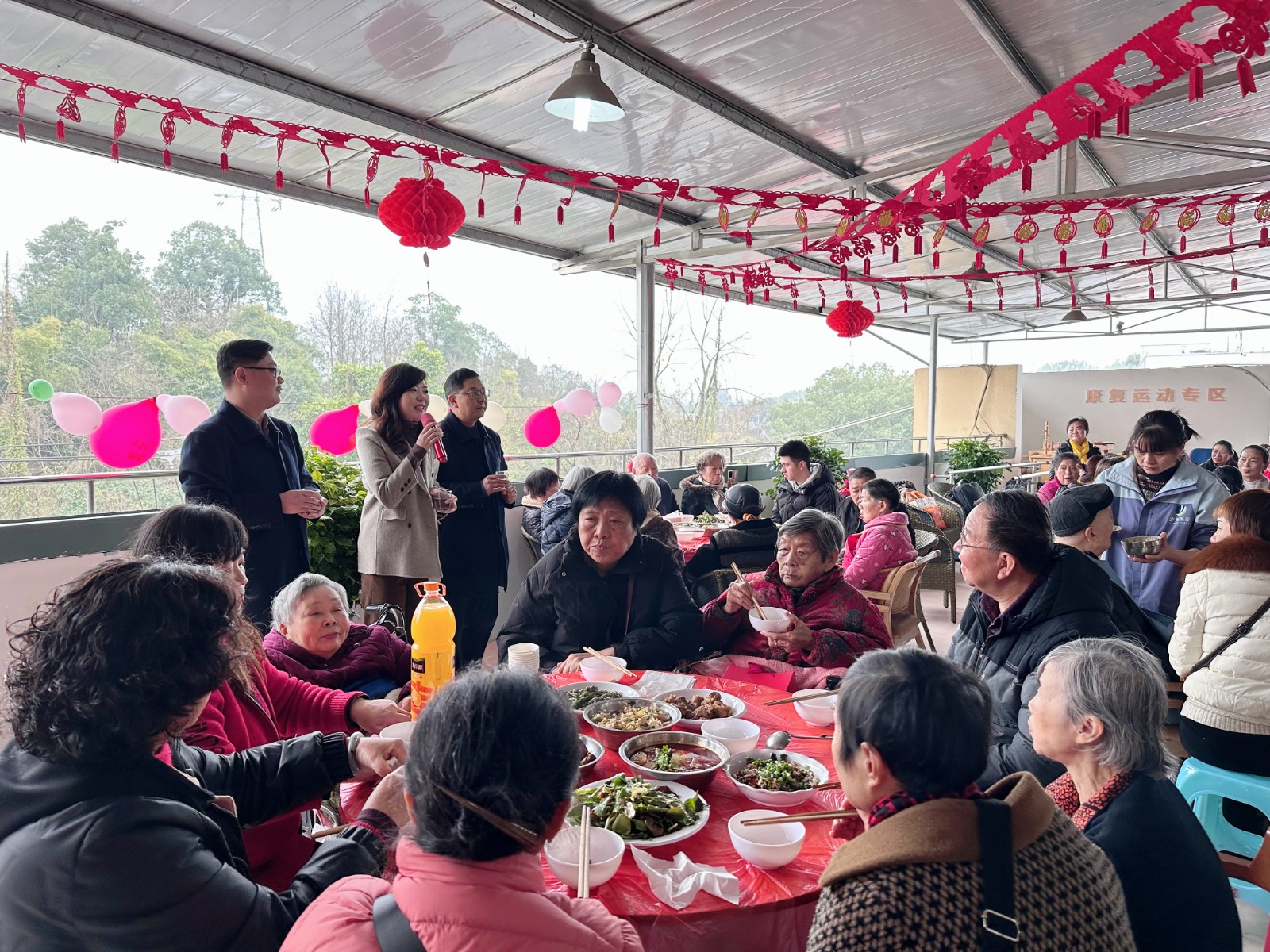 11519日,醫養投資公司舉辦為期一周的家宴活動。春江酒城嘉苑養老社區、康樂佳園(華陽店)300余位長者朋友先后相邀歡聚現場,分享新年喜悅。西南醫投集團黨委書記總經理楊虹,黨委委員、副總經理武瑛,黨委委員、紀委書記劉興林等出席活動。