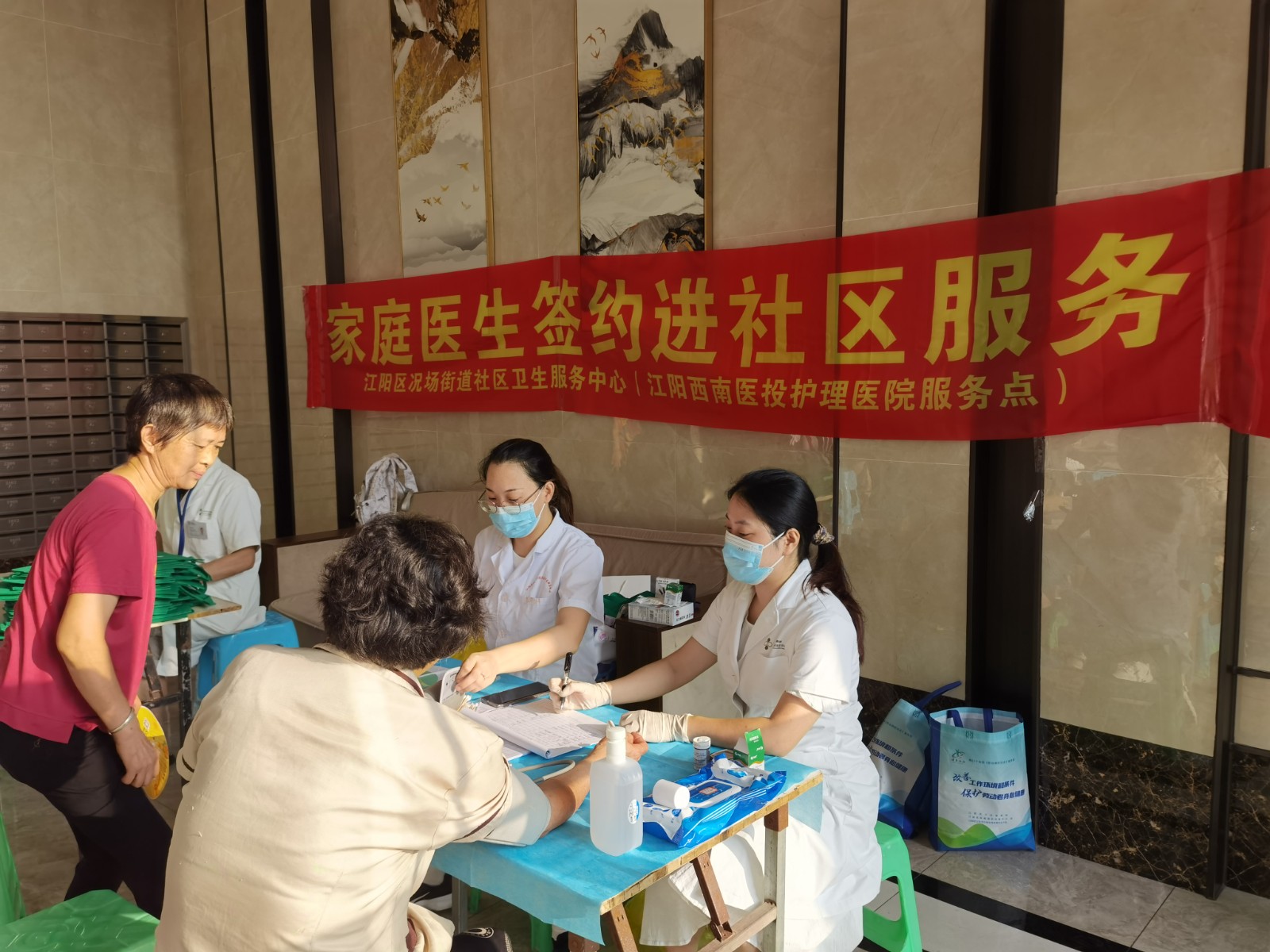 為進一步落實《健康中國2030規劃綱要》,提升社區居民的健康水平和生活質量,85—9西南醫投集團旗下江陽西南醫投護理醫院組織專業家庭醫生團隊走進江陽區翡翠濱江、陽光國際城、天譽譽府、金科博翠灣等多個小區開展家庭醫生團隊進社區服務活動為況場街道轄區300余名居民提供健康管理服務。